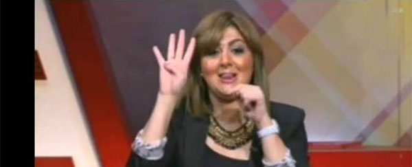 الفنانة المصرية أخرجت لسانها على الهواء للجماعة الإرهابية، ورفعت أصابعها الأربع ليس إشارة لهم ولكن لتقول أن عبدالفتاح السيسي سيحكم البلاد الأربع سنوات القادمة.